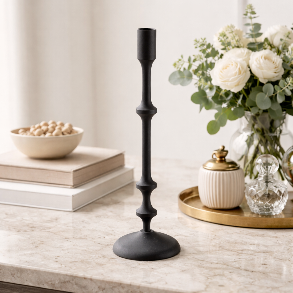 Der Kerzenhalter „Lifted“ setzt Kerzen bewusst in Szene. Seine reduzierte Form hebt die Kerze leicht an und verleiht ihr dadurch eine schwebende, elegante Präsenz. Gefertigt aus robustem Metall, überzeugt „Lifted“ durch klare Linien, zeitloses Design und eine hochwertige Haptik.