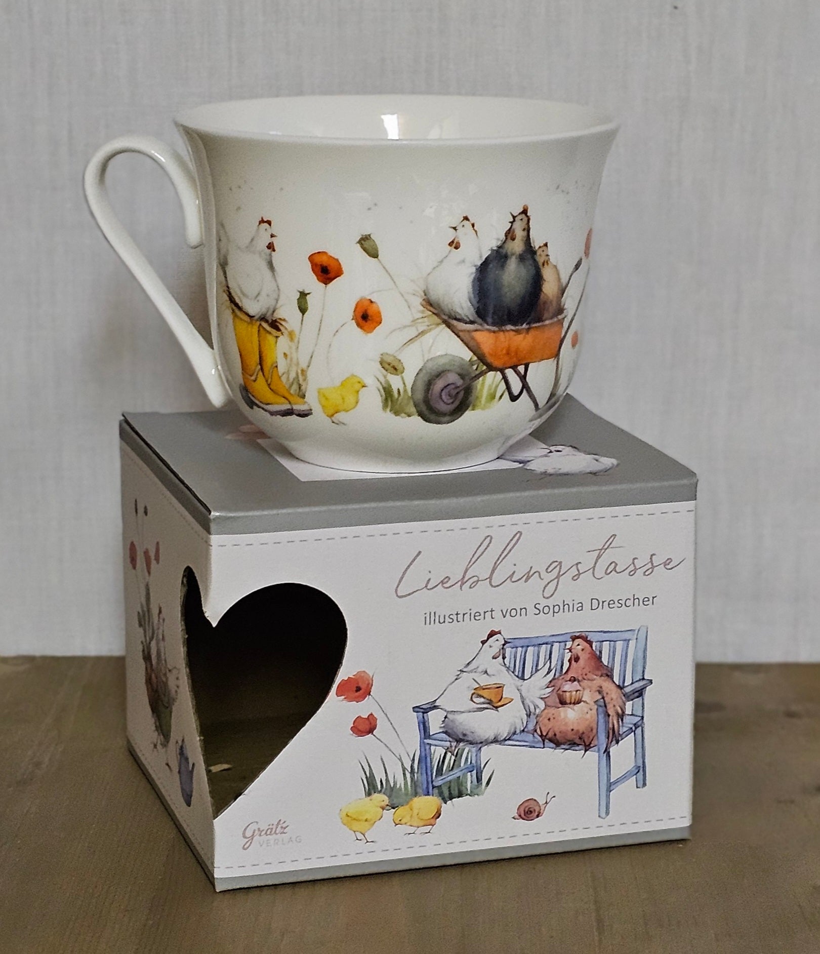 Porzellantasse / Lieblingstasse / Henkeltasse / Becher / Frühstückstasse mit Geschenkbox von Grätz Verlag - "Hühnerbande"