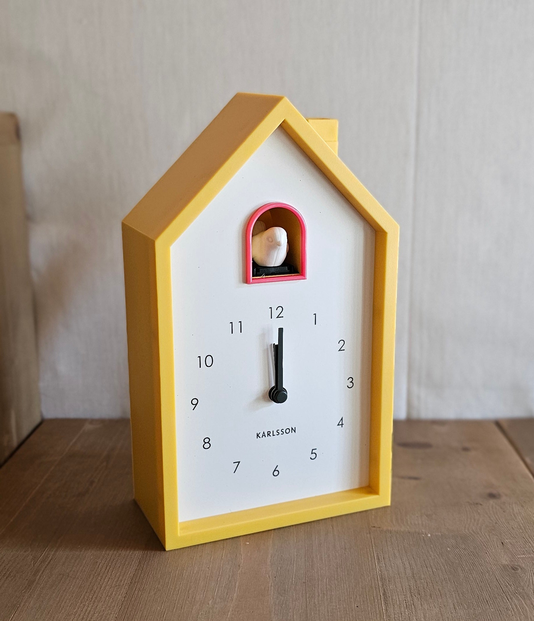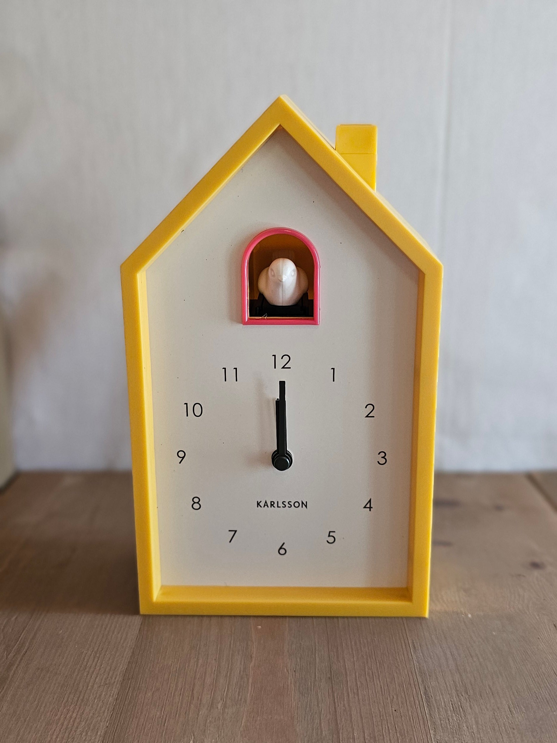 Moderne Kuckucksuhr / Wanduhr / Uhr / Wecker – gelb – Höhe 20 cm, Breite 12 cm, Tiefe 6 cm