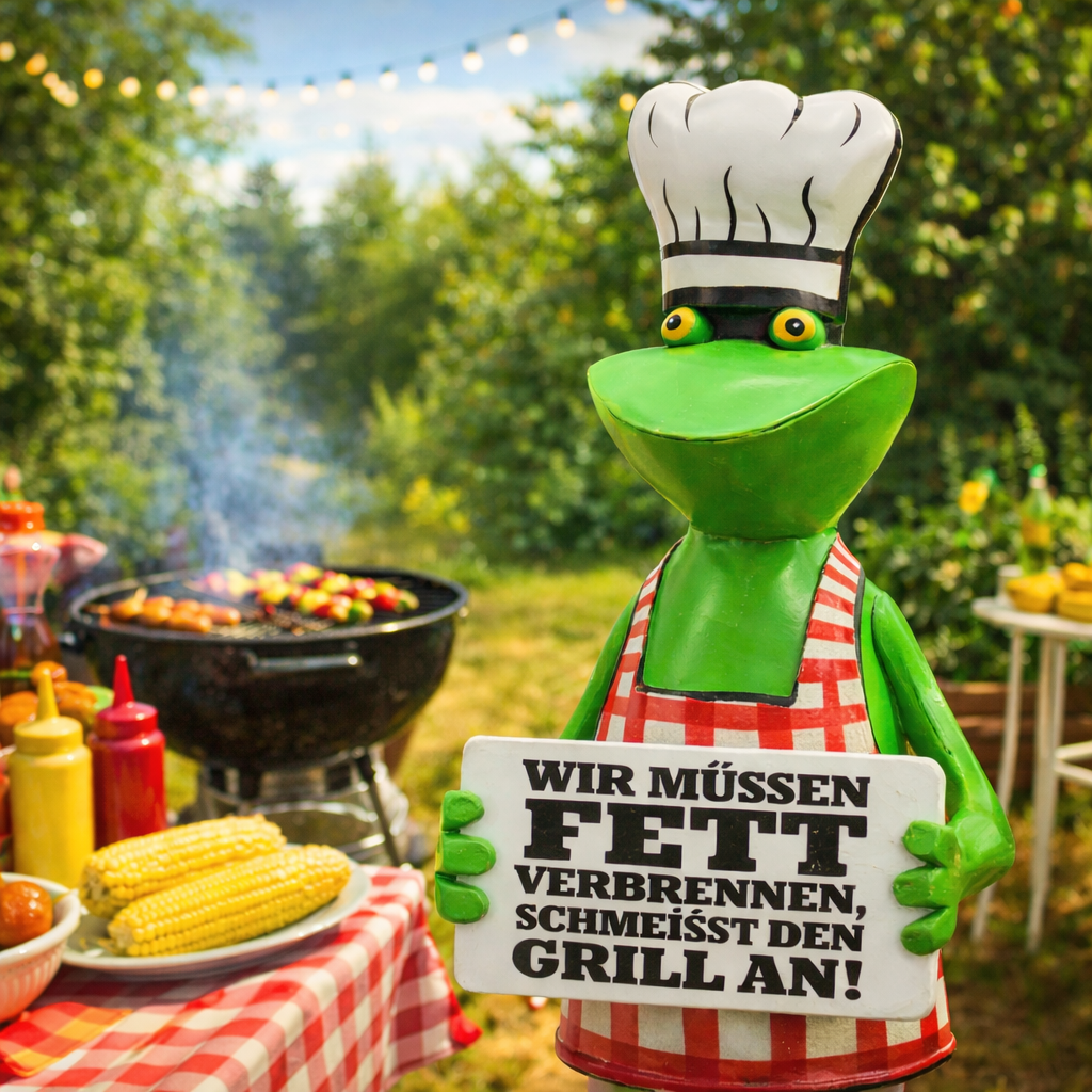 Perfekt als Geschenk für Grillfans, Gartenfreunde, Froschliebhaber oder als witzige Mitbringsel-Idee zur Gartenparty.