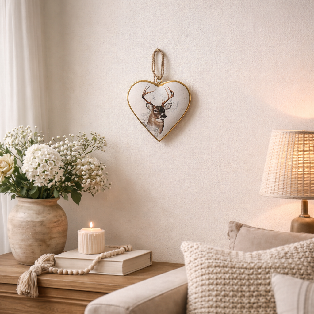 Dieses liebevoll gestaltete Deko-Herz aus Metall bringt rustikalen Charme und alpine Gemütlichkeit in dein Zuhause. Das detailreiche Hirschmotiv verleiht dem Herz eine besondere Tiefe und macht es zu einem stilvollen Blickfang – egal ob im Wohnzimmer, Flur, Schlafzimmer oder in der gemütlichen Berghütte.