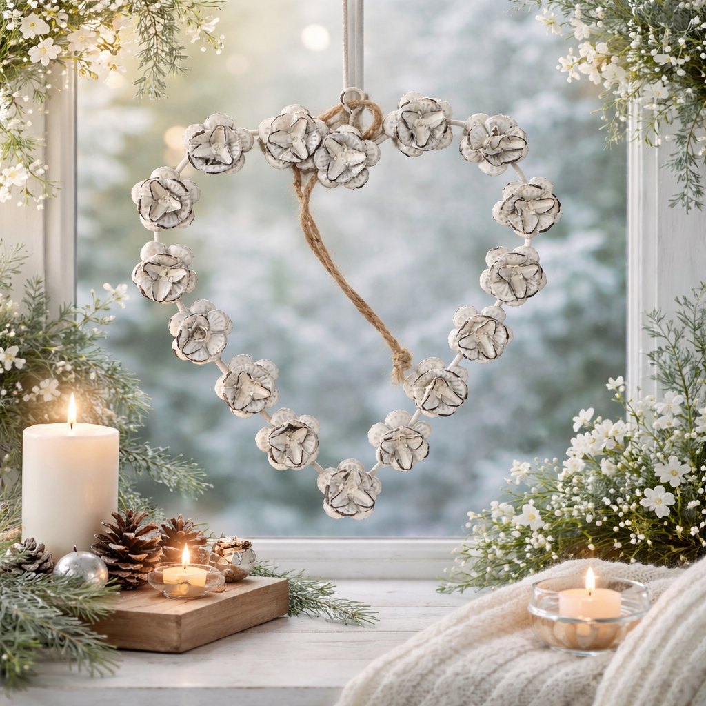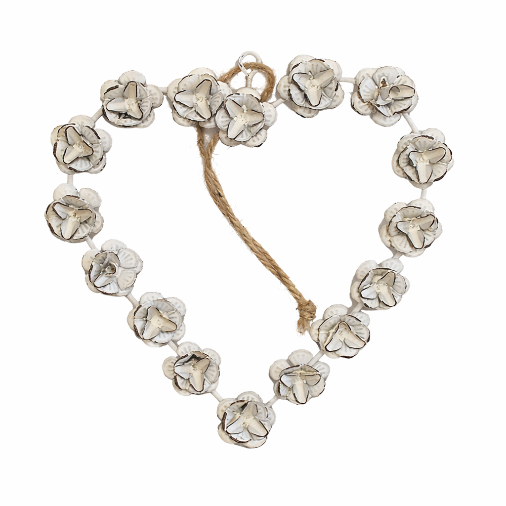 Dieses liebevoll gestaltete Metallherz zum Aufhängen ist ein echtes Statement für Wärme, Stil und Herzlichkeit. Die zarten, weiß gehaltenen Blüten verleihen dem Herz eine zeitlose Eleganz und machen es zu einem besonderen Blickfang – ob im Wohnraum, Wintergarten, Eingangsbereich oder als liebevolle Geschenkidee.